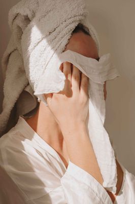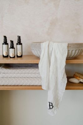Bathe: Immerse your Bestow Bathing Cloth in warm water, wring out any excess and press to your skin for five deep breaths. Repeat three times, then follow with skincare application.